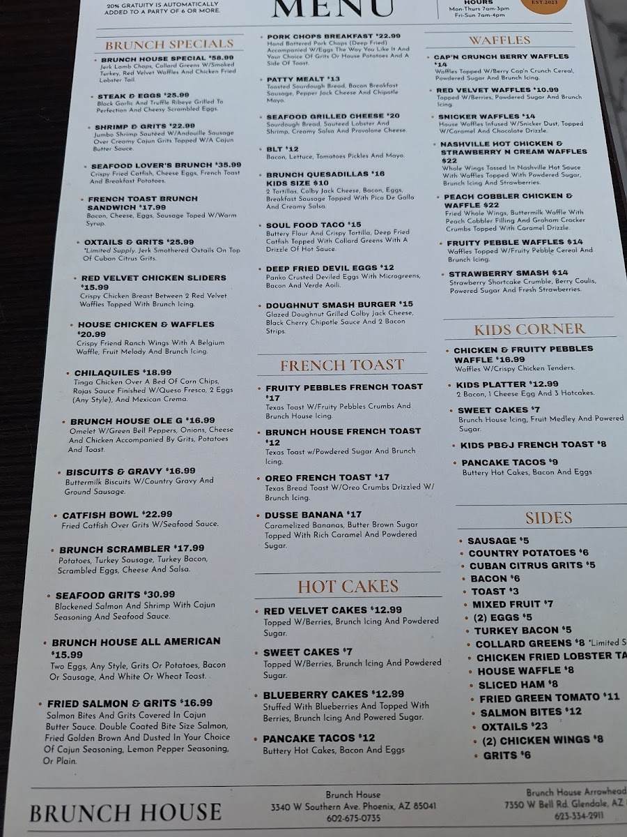 Welcome to Brunch House - Arrowhead, a vibrant culinary haven located at 7350 W Bell Rd suite 201 in Glendale, AZ. This establishment has rapidly become an integral part of the local brunch scene, seamlessly blending soul-food flavors with traditional breakfast comforts.
